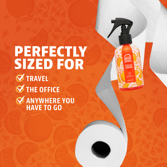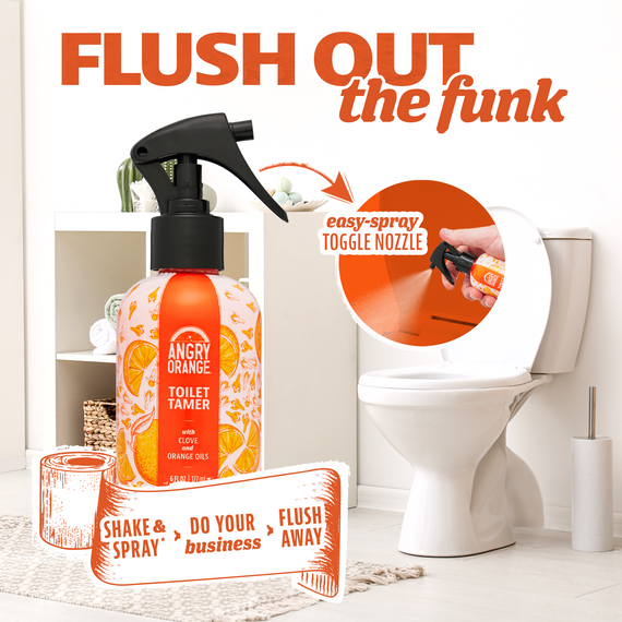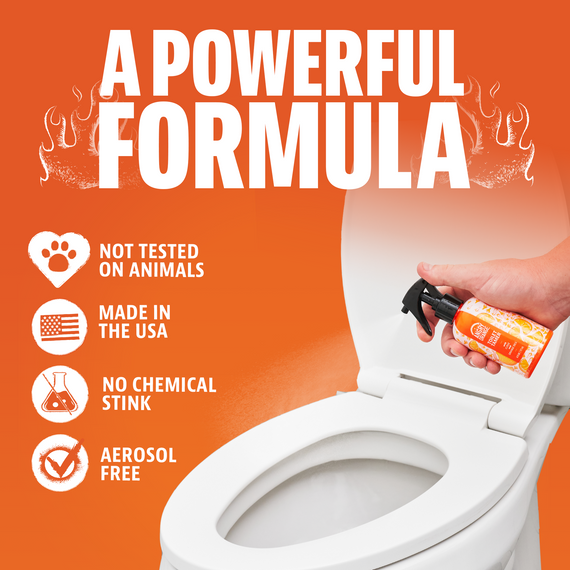 Made to destroy nasty odors in bathrooms, cars, trashcans, floors, carpets, fabrics and more. Our Orange Spice Royale is made with fresh orange oil and leaves behind a sublime fresh scent with notes of clove oil, eucalyptus oil, tea tree oil, and rosemary oil. Other bathroom sprays just "cover-up" smells and leave behind a floral-scented poop fragrance.
