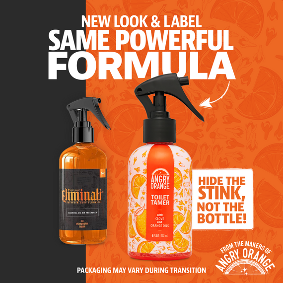 The bathroom spray that can keep a secret. Eliminati's Orange Spice Royale is a citrus-scented toilet bowl spray that is the world's newest luxury odor eliminator.