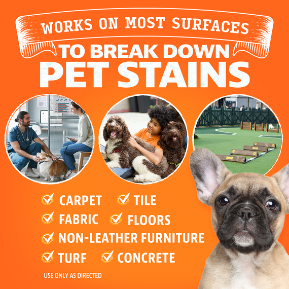 • MULTI-SURFACE USE - A versatile odor eliminator and carpet stain remover that can clean it all! This multi-surface enzyme cleaner for dog urine works great on most surfaces, from carpet to hardwood floors, fabric, turf, and more.